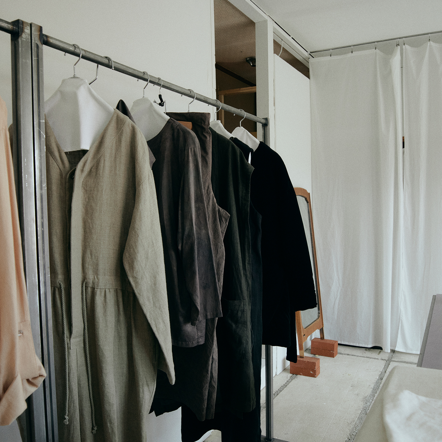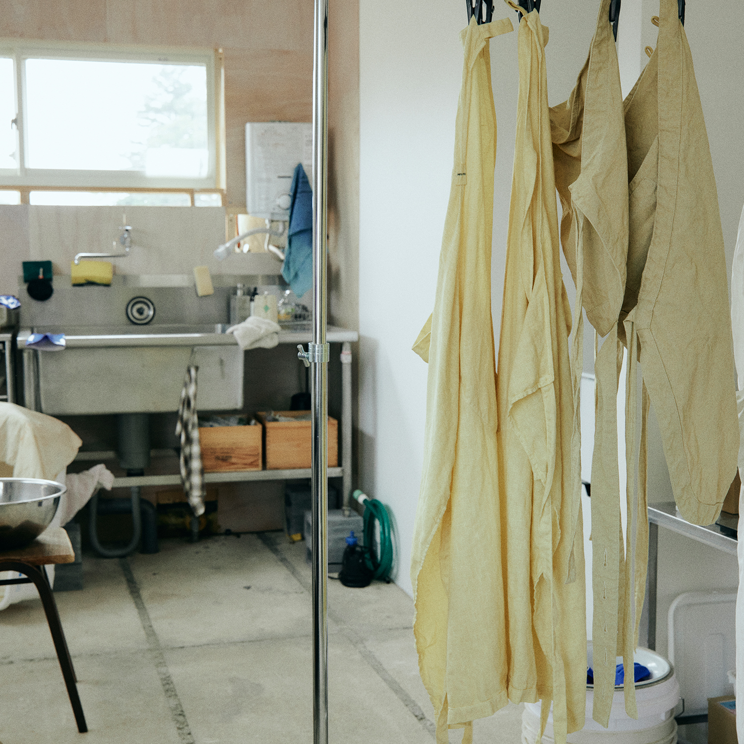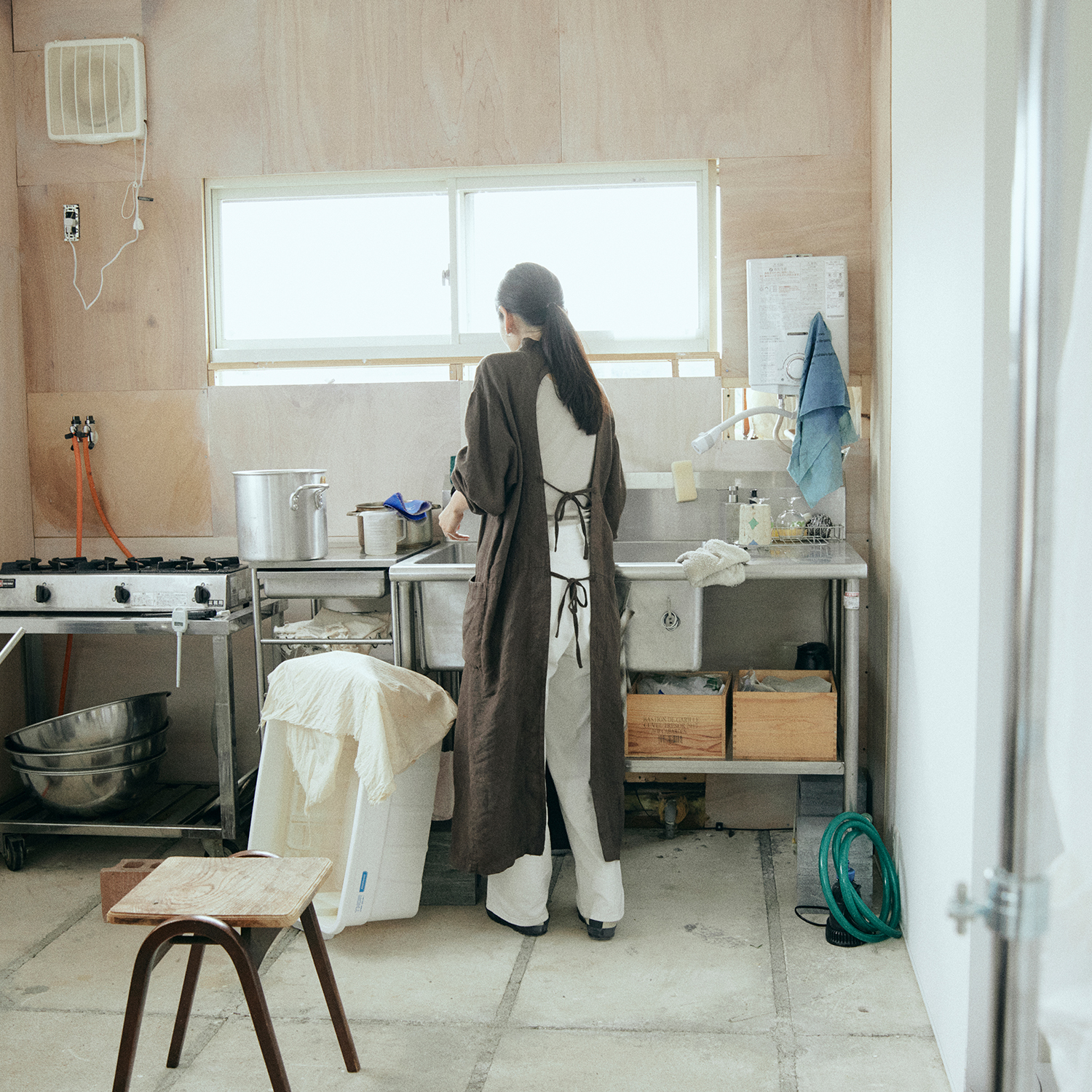 ワークウェアのスタイルに基づいて、自らも飲食店に携わっていた経験を活かし、現場でリアルに感じたことからデザインするエプロンや衣たちは美しくも実用性に溢れた機能美を感じさせてくれるものばかりです。