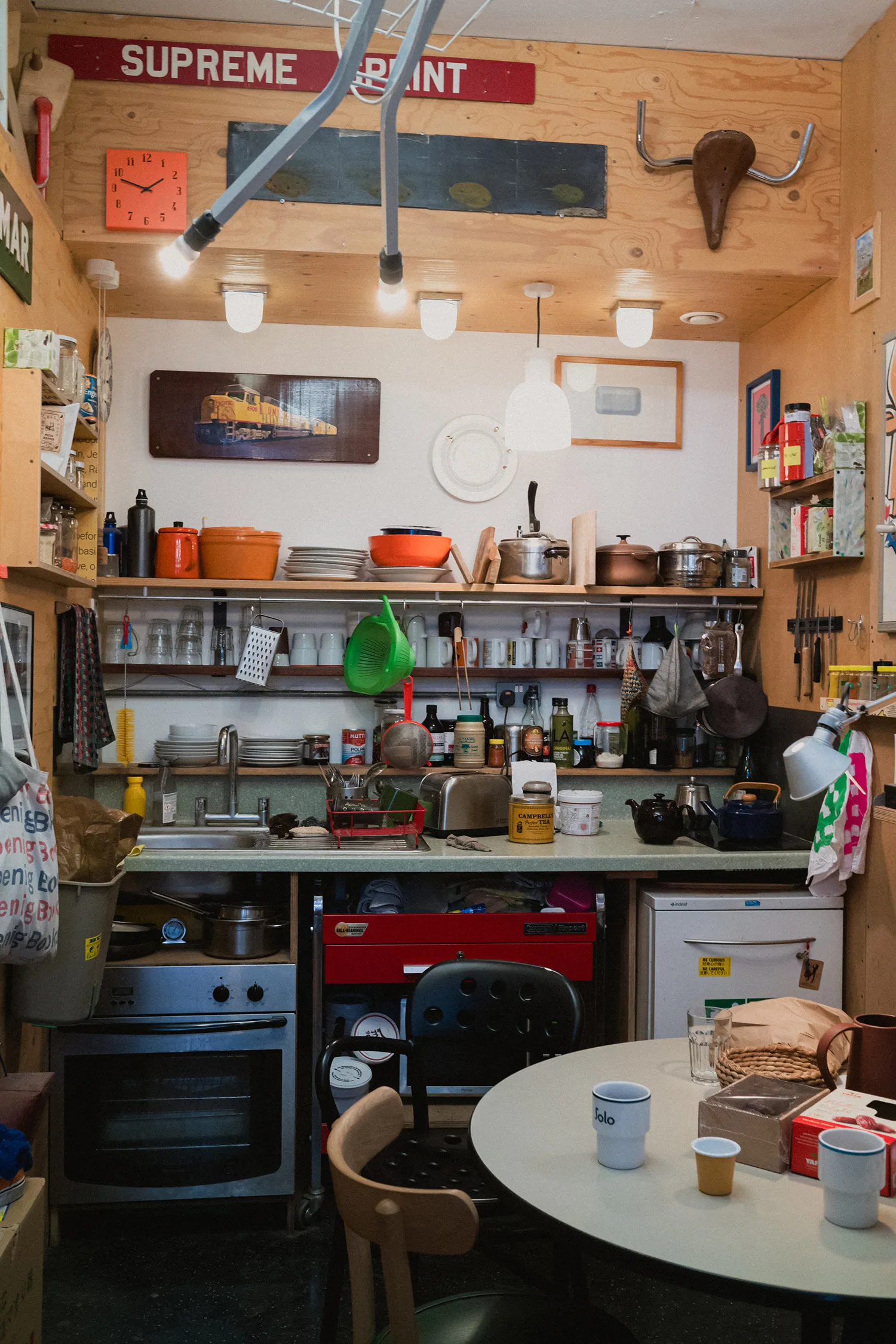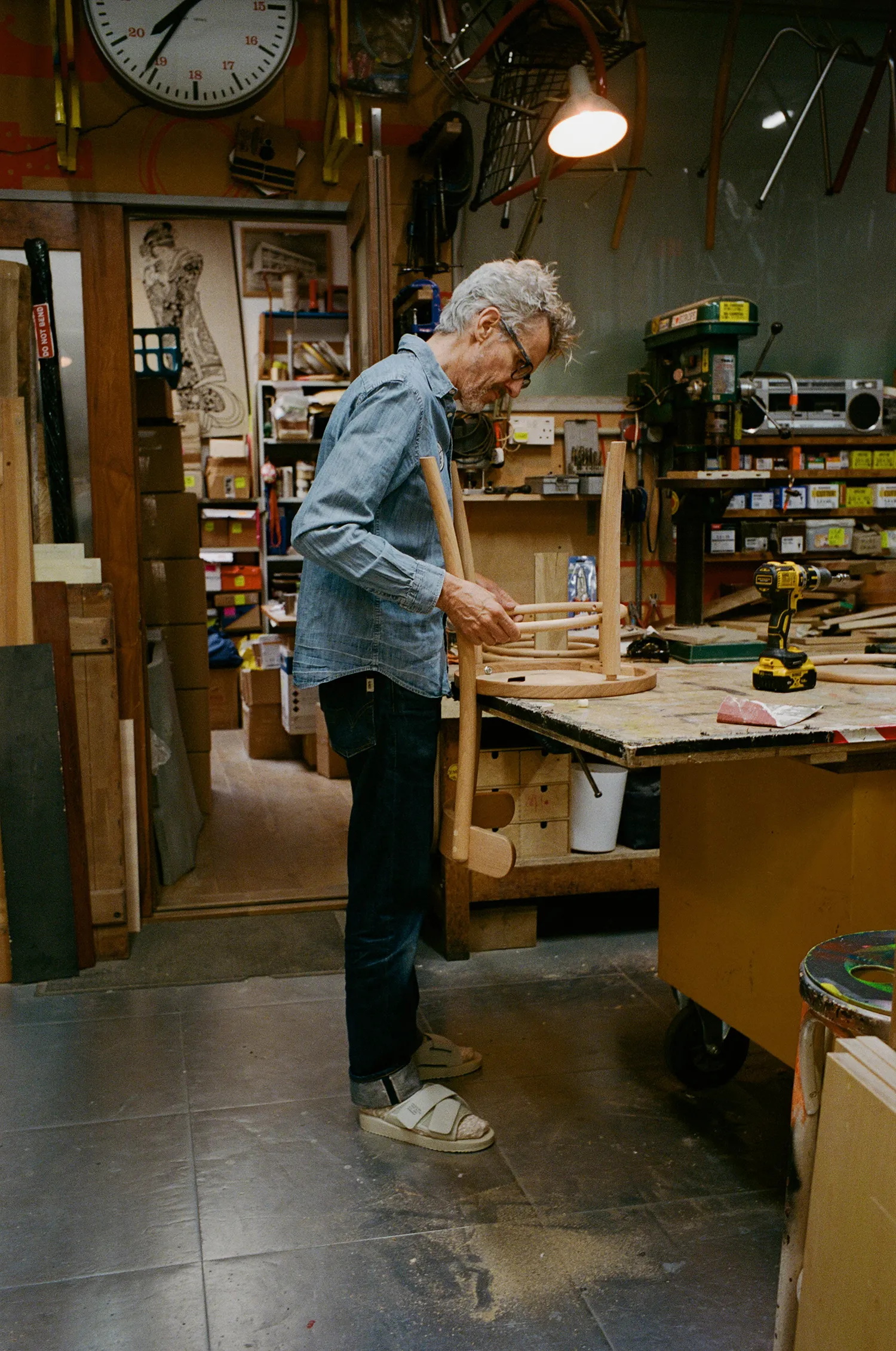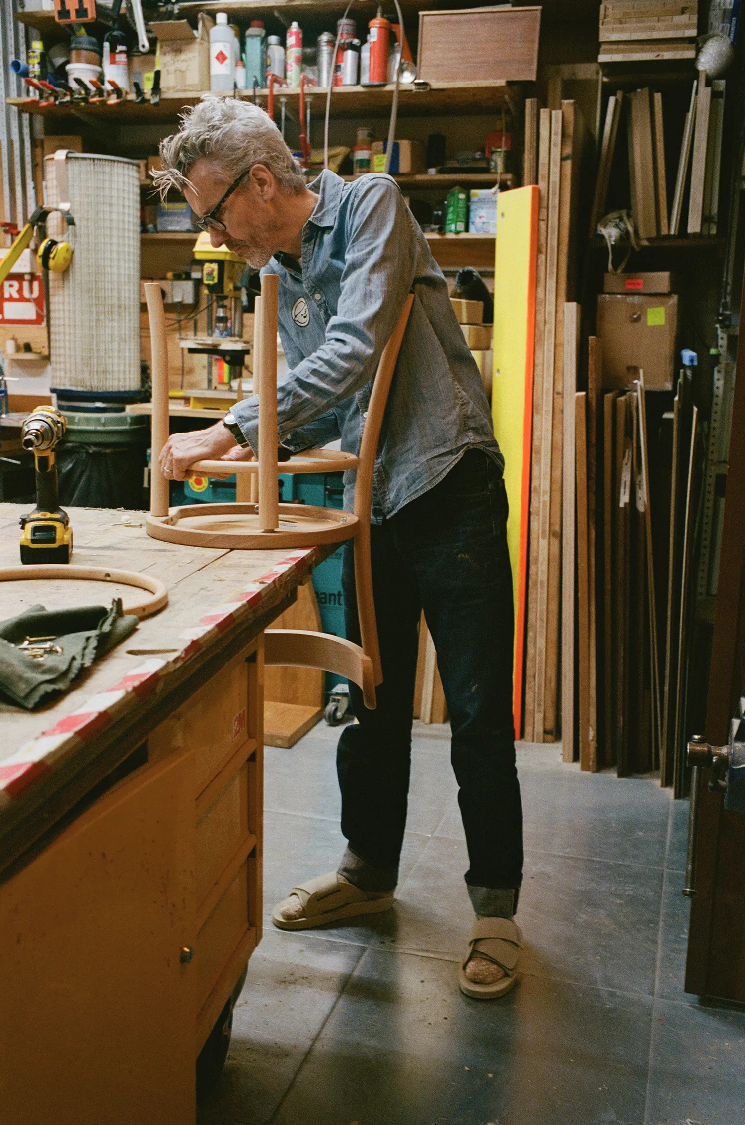 デザインはもちろん、自ら家具の組み立てをも行うマイケルのスタジオは、作業ツールや資料、過去のアーカイブからお気に入りのアイテムに囲まれていて、まるで少年の基地に来たようなワクワクする空間。