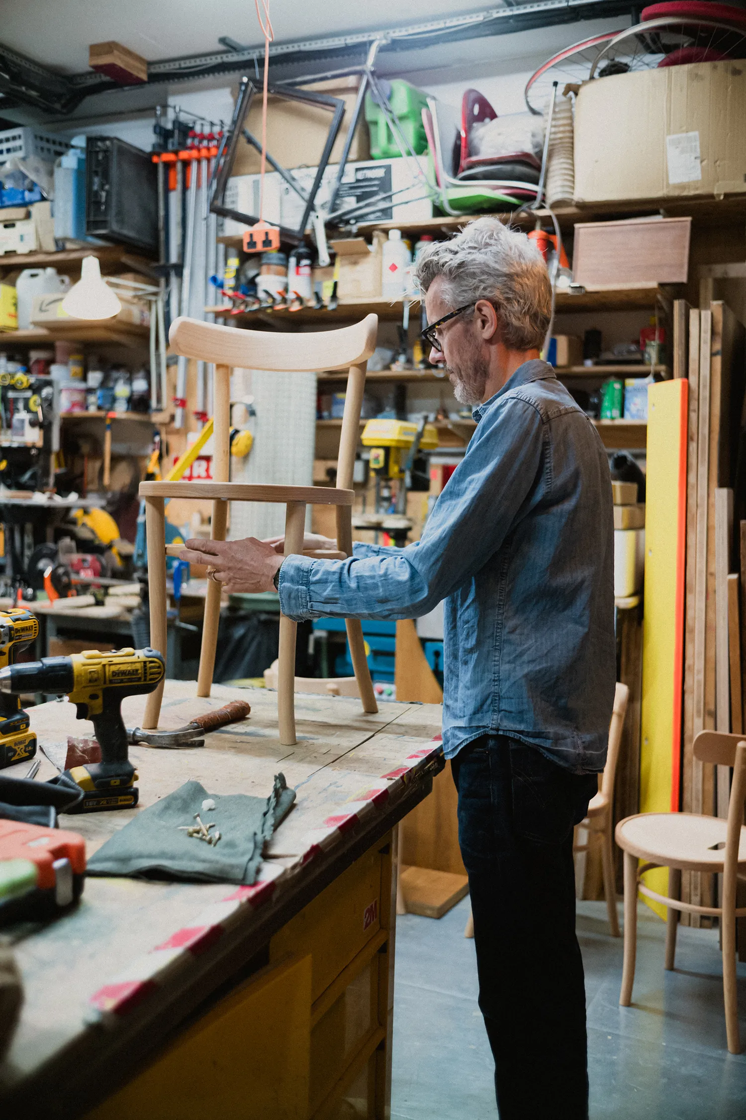 イースト・ロンドンのスタジオで生まれる家具やプロダクトは、簡潔さ、経済性、そして素材への深い敬意を重んじる実用的なアプローチで知られています。