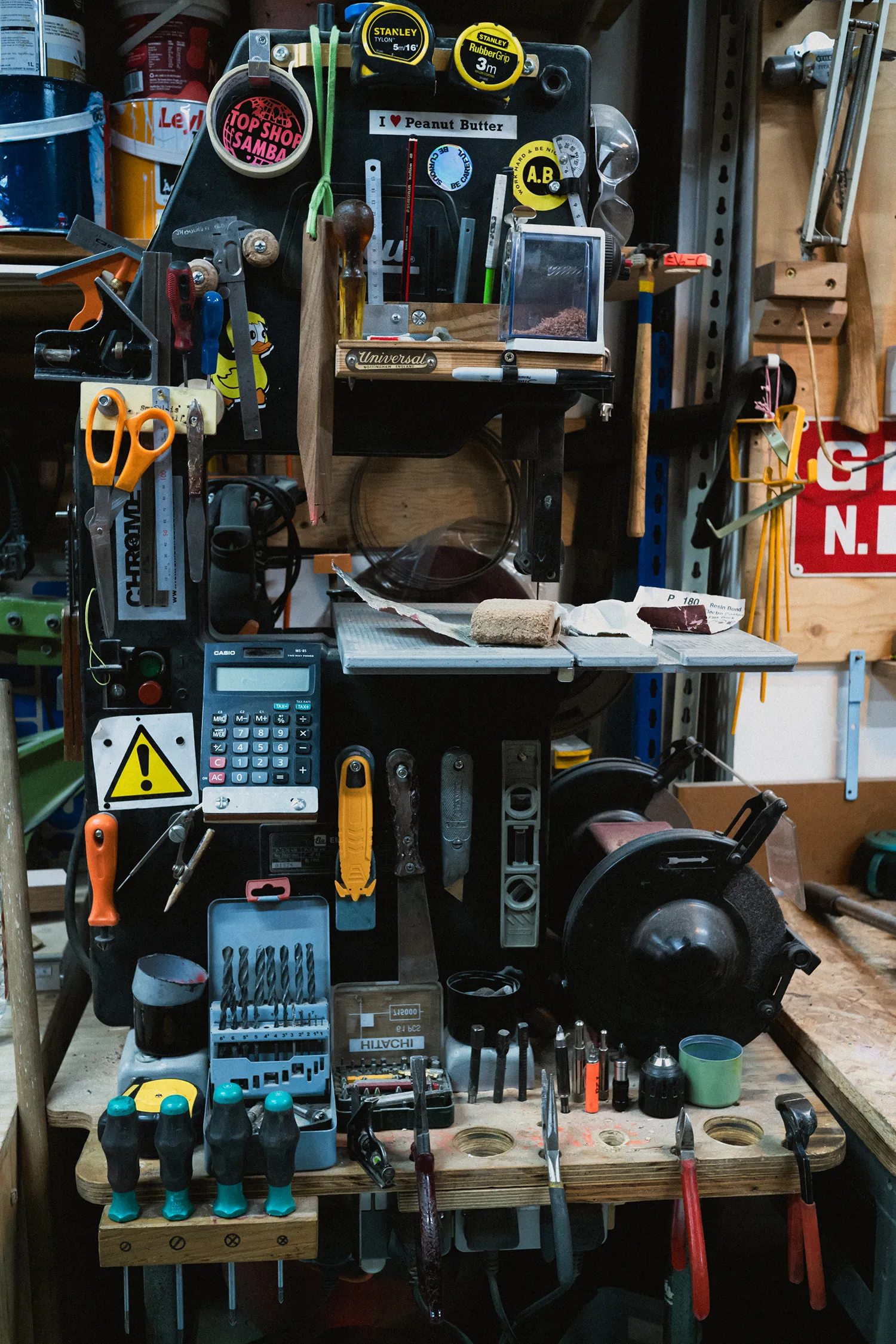 一見雑然としているようで、必要なツールが機能的に使いやすい場所にフィックスされており、スタジオの在り方からも哲学を感じます。