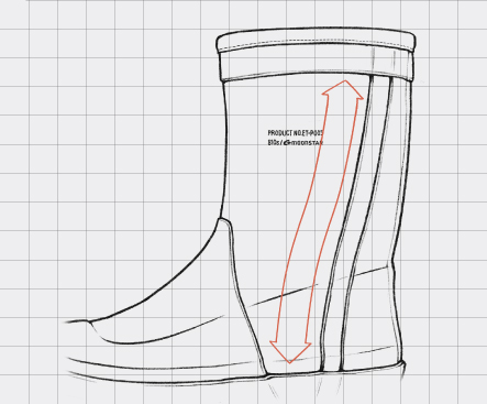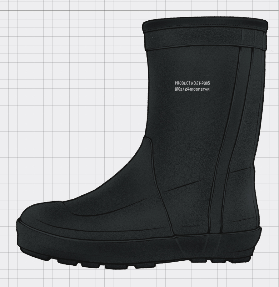 多様な現場に対応する、実用性を重視したラバーブーツタイプ。足全体をしっかり覆う設計で、水や汚れの侵入を防ぎながら、高い防護性を発揮。履き口にはパイピングを施し、足当たりを和らげる仕様に。防滑性を考慮して設計されたサクション(吸盤)ソールが、濡れた地面でも安定したグリップ力を発揮。厚みのあるインソールを搭載することでクッション性を高め、長時間の立ち仕事でも快適な履き心地をサポート。