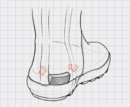 - バンドを閉じた状態でも簡単に履くことができる特別な踵構造を採用、両手が塞がった状態でもストレスなく脱ぎ履きできる構造です。